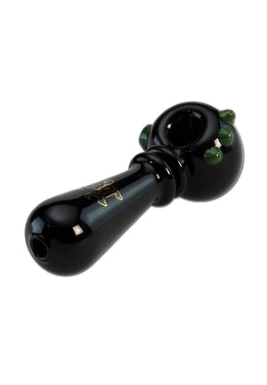 Die Handpfeife von Black Leaf ist aus robustem schwarzen Borosilikatglas gefertigt und liegt dank der griffigen Oberfläche angenehm in der Hand. Das tiefliegende Köpfchen sorgt für ein intensives Raucherlebnis, während das integrierte Kickloch für den Extra-Kick sorgt. 🚬✨