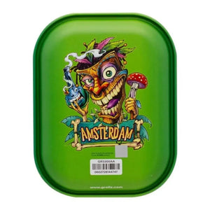 Dieses farbenfrohe Rolling Tray verbindet tropisches Tiki-Design mit urbanem Amsterdam-Flair. Das lebendige Artwork sorgt sofort für gute Laune und bringt ein Stück Urlaubsstimmung auf deinen Tisch – ideal für entspannte Sessions mit Stil.