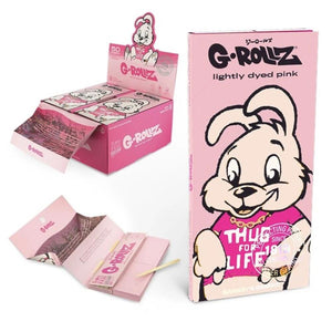 G-Rollz | Banksy's Graffiti Thug for Life Lightly Dyed Pink – 50 KS Slim Papers + Tips & Tray 🎨🌸📄✨