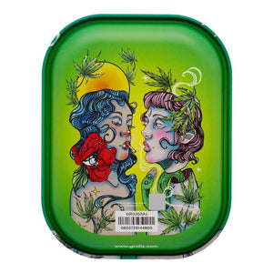 Das G-Rollz Smokey Sisters Rolling Tray S besticht durch ein detailreiches Motiv, das die „Smokey Sisters“ auf einem leuchtend grünen Hintergrund zeigt. Dieses farbenfrohe Kunstwerk verleiht deiner Session nicht nur Funktionalität, sondern auch eine kreative, stilvolle Note.