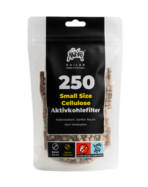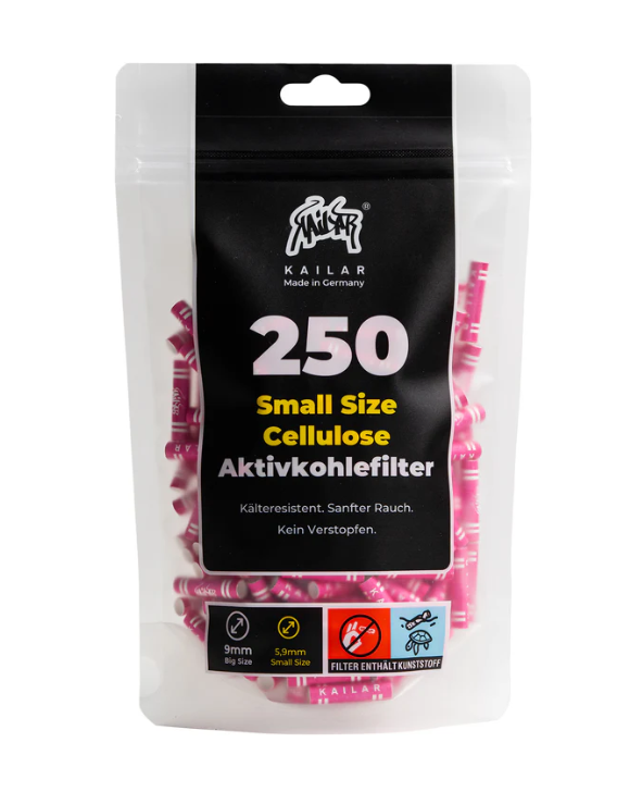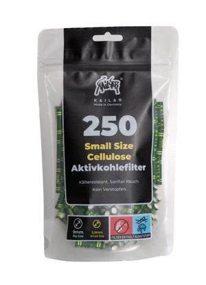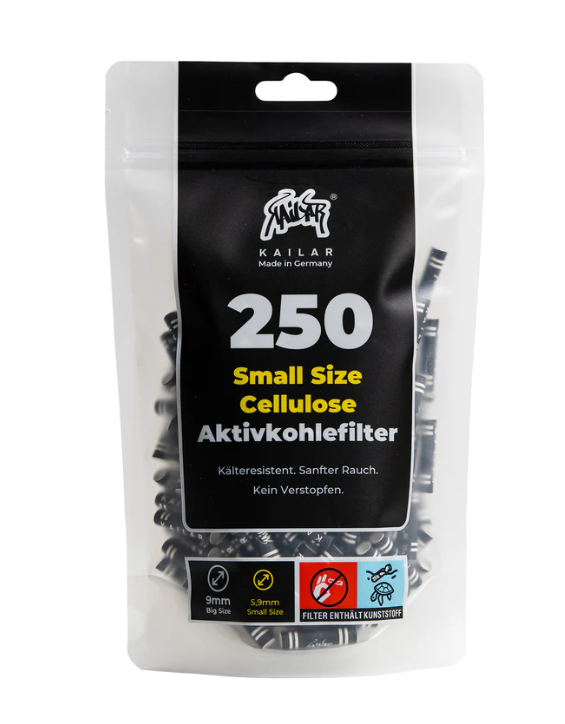 Die Kailar Slim Aktivkohlefilter reduzieren die Aufnahme von Schadstoffen und sorgen für ein angenehm kühles, sanftes Rauchgefühl. Eine spezielle Zellulosekapsel verhindert, dass Aktivkohlestaub in den Mund gelangt, wodurch ein sauberes und unverfälschtes Raucherlebnis gewährleistet wird.