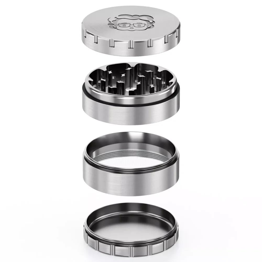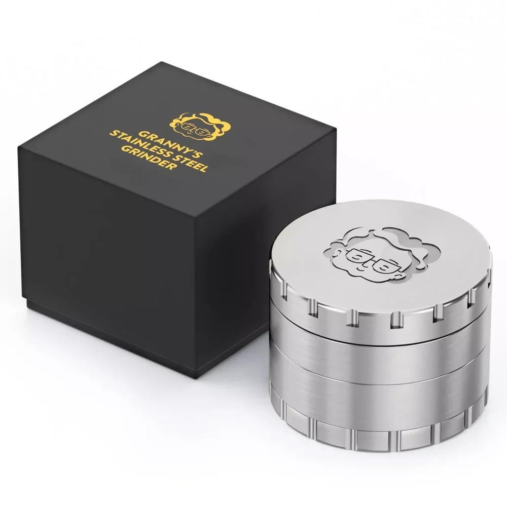 Der 4-teilige Edelstahl Grinder von Granny’s Weed verbindet Stabilität und Langlebigkeit. Hergestellt aus rostfreiem Edelstahl für ein robustes Gewicht und maximale Kontrolle beim Mahlen.
