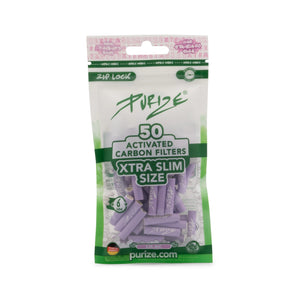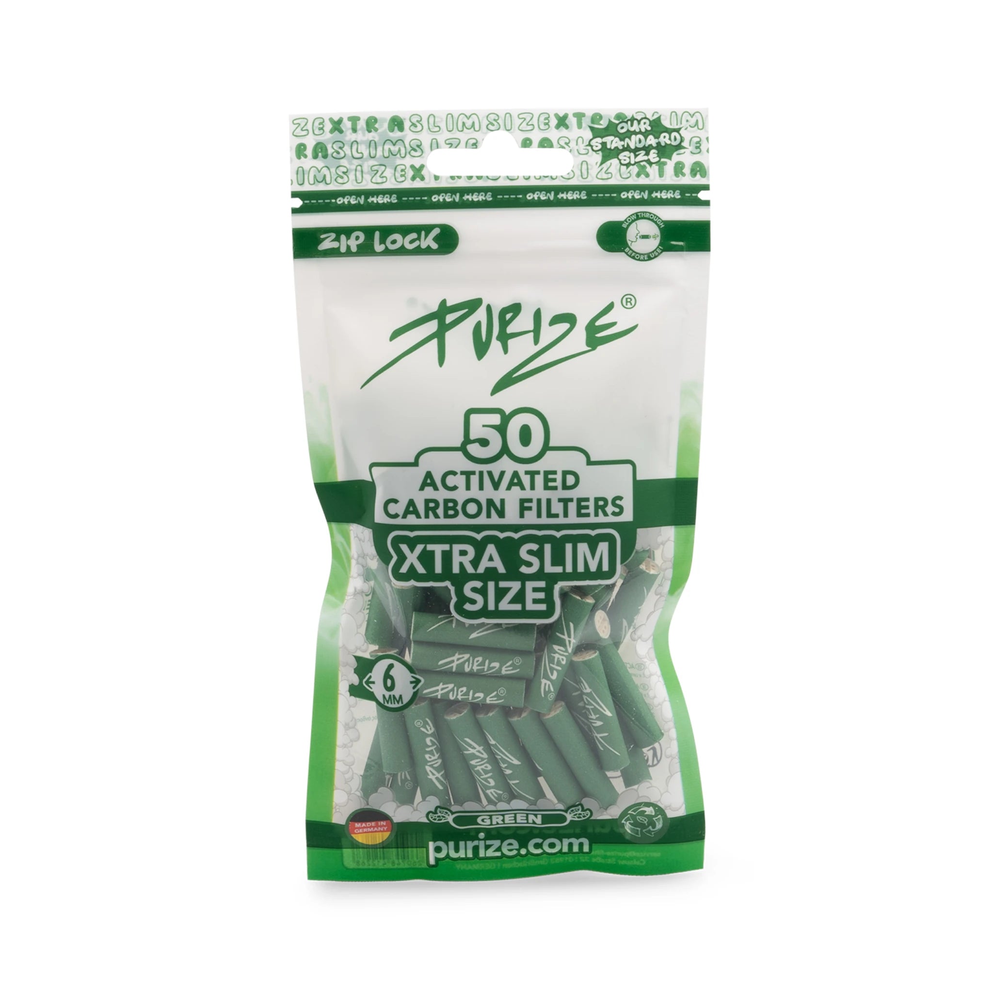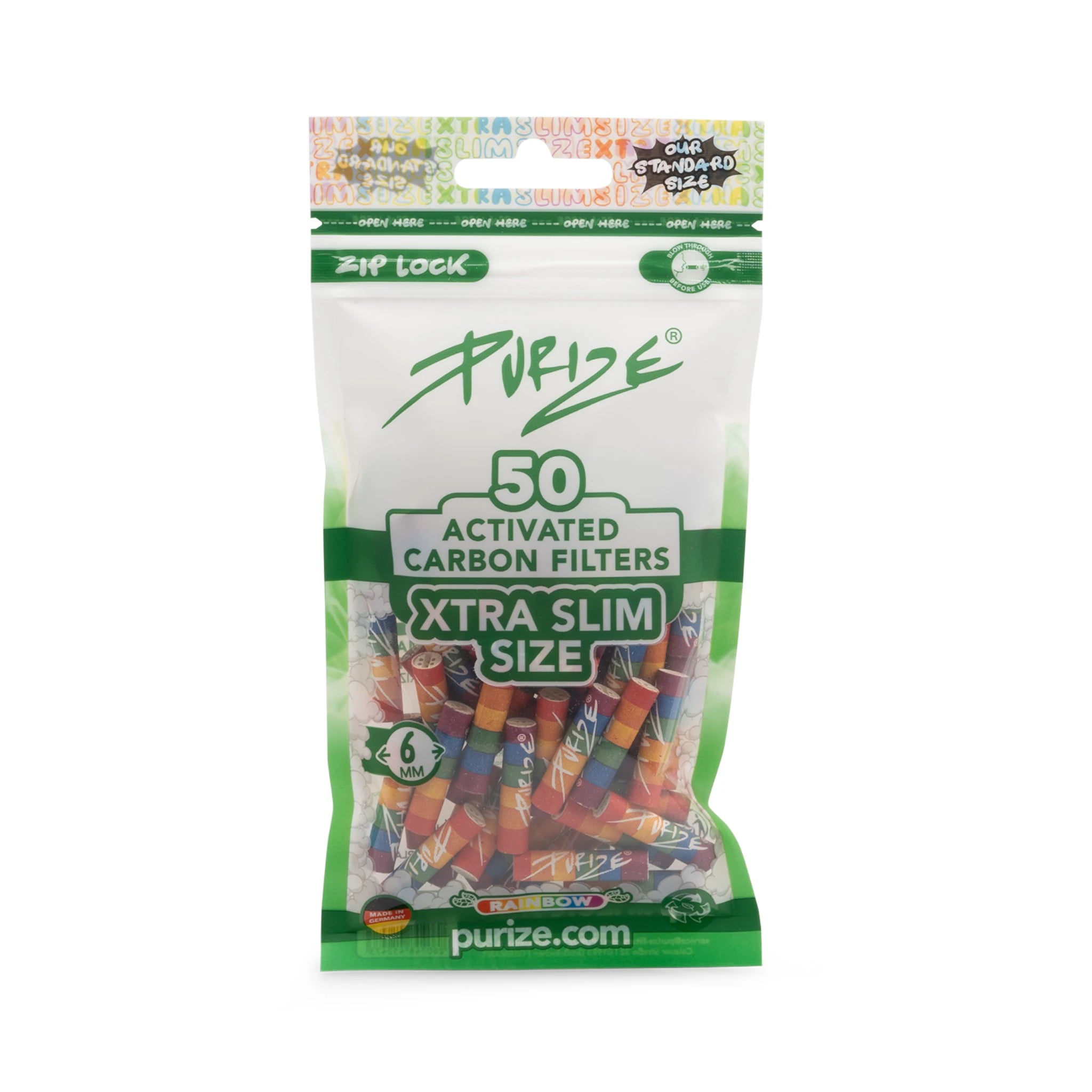 💨 Die PURIZE XTRA Slim Size Filter mit 6 mm Durchmesser werden im praktischen 50-Stück-Pack geliefert und eignen sich ideal für fein gedrehte Zigaretten.